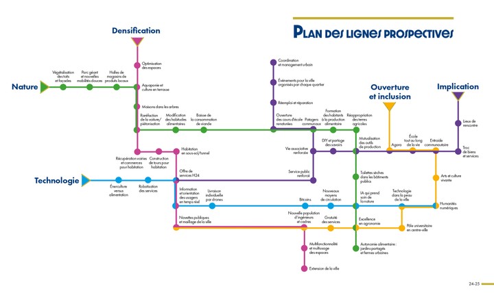 It represented the images of the futures produced by the participants along five “thematic lines” inspired from subway maps.